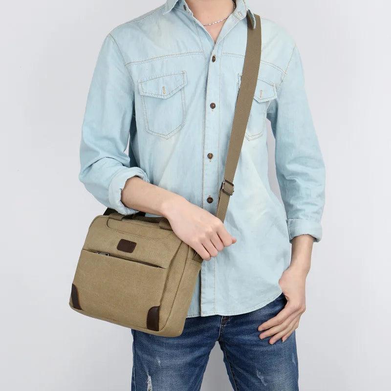 Description:Upgrade your daily style with this men's leather laptop bag that combines business and casual functions effortlessly.Features: Durable canvas material for a retro look Spacious compartments to organize essentials Adjustable crossbody strap for comfort Ideal for business and casual occasions Securely holds a laptop and documents This product may be...