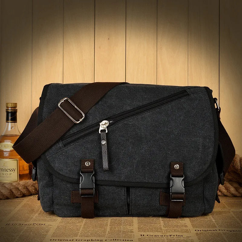 This canvas briefcase is perfect for men who need a stylish and functional bag for work or casual outings. It features multiple compartments to organize your belongings and can accommodate a laptop.