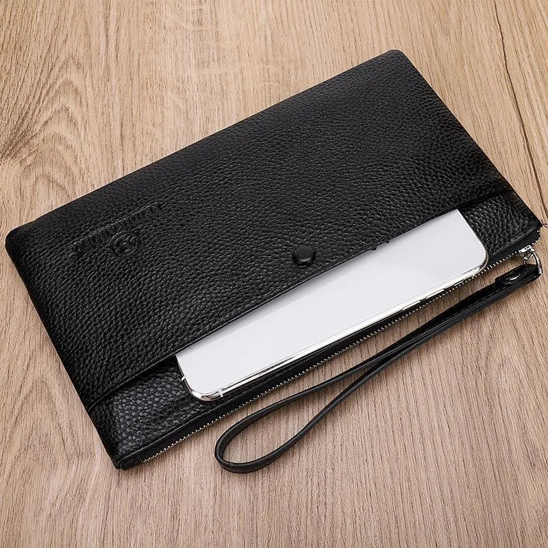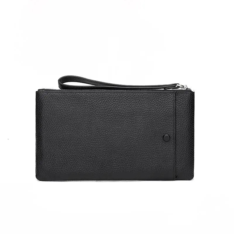 This men's clutch bag is crafted from high-quality materials, featuring a long zipper for easy access. It is a stylish and functional accessory suitable for business use.