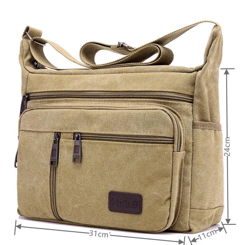 This canvas tote bag is designed for men with a stylish and functional design. It can be used as a laptop briefcase or a messenger shoulder bag, making it perfect for business use.