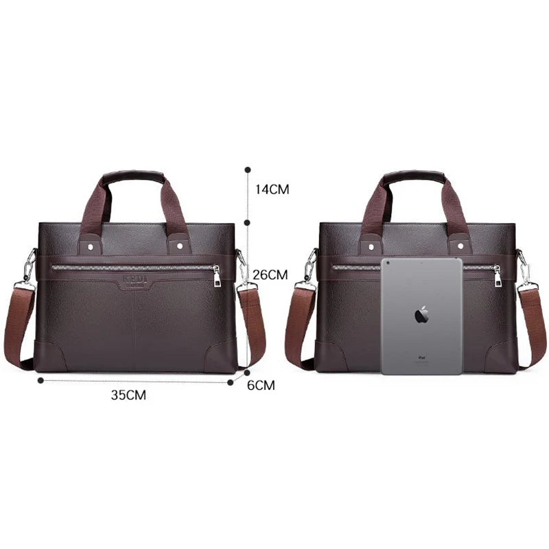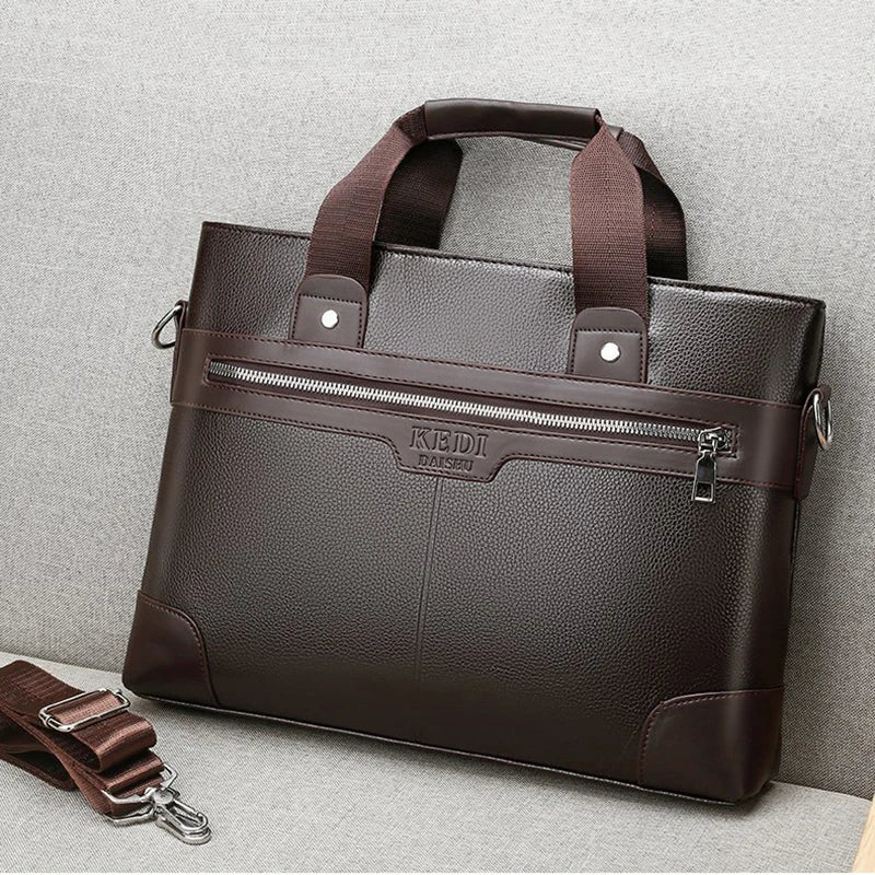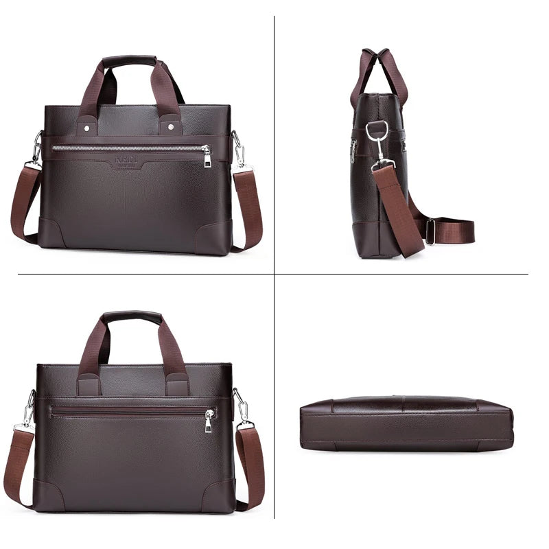 This men's briefcase is made of high-quality PU leather, designed for business professionals, with a spacious interior for a laptop and other essentials.