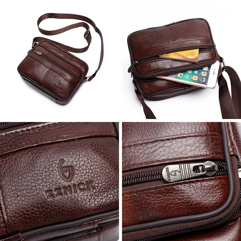 This men's shoulder bag is made of premium leather and features a stylish flap design. It offers a large capacity for all your daily essentials, making it perfect for work or casual outings.