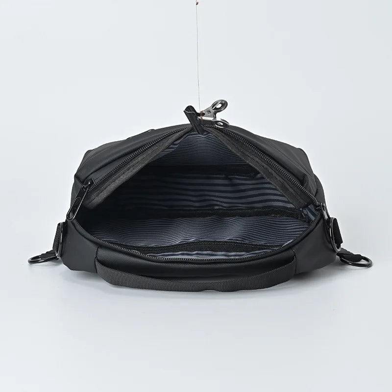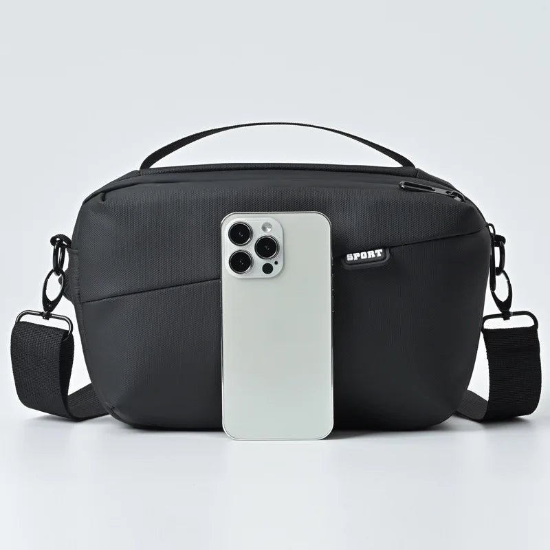 This stylish chest bag is made of high-quality leather and film fabric, perfect for everyday commuting.