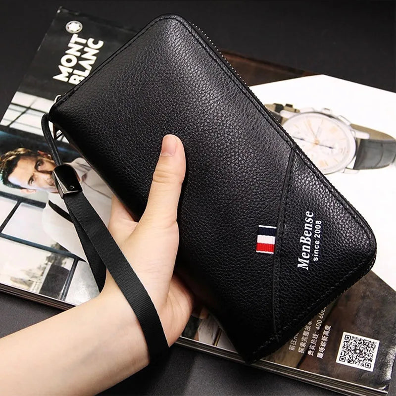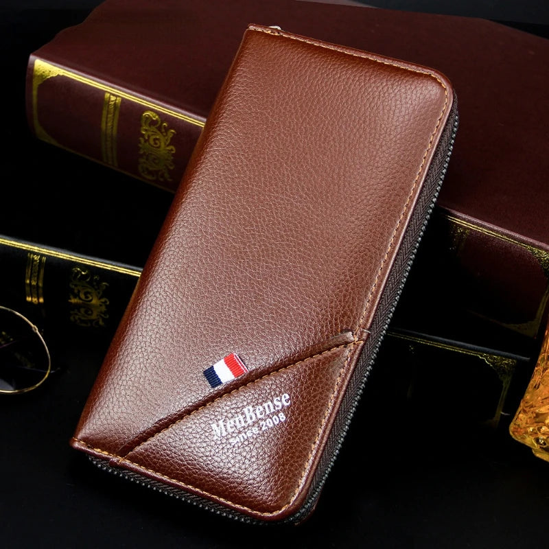 This men's wallet features a long zipper design, large capacity, and multi-functional layout for business and leisure use. It can hold multiple cards and mobile phone.