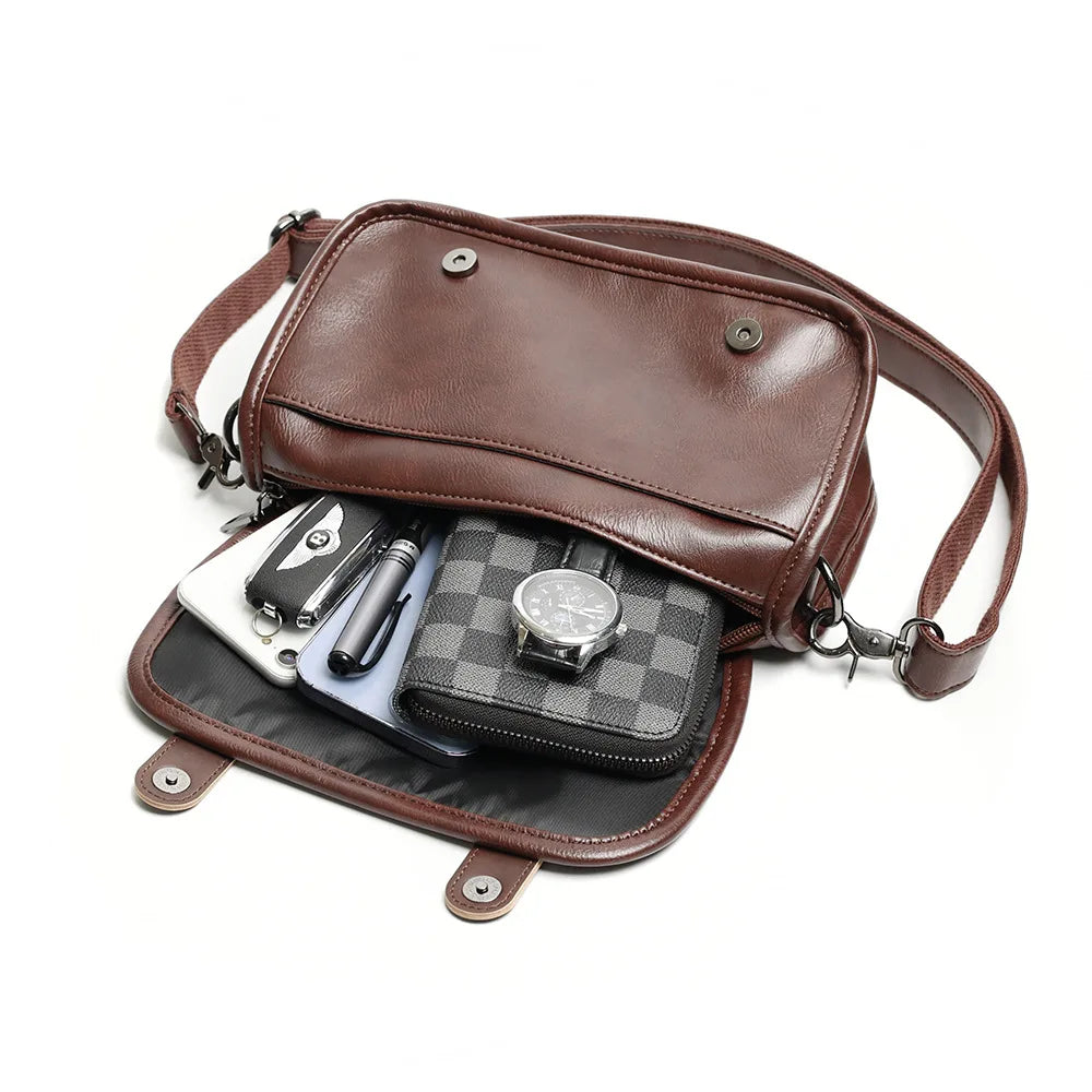 Stay stylish and organized with this men's messenger bag made of PU leather. Perfect for carrying your essentials comfortably.