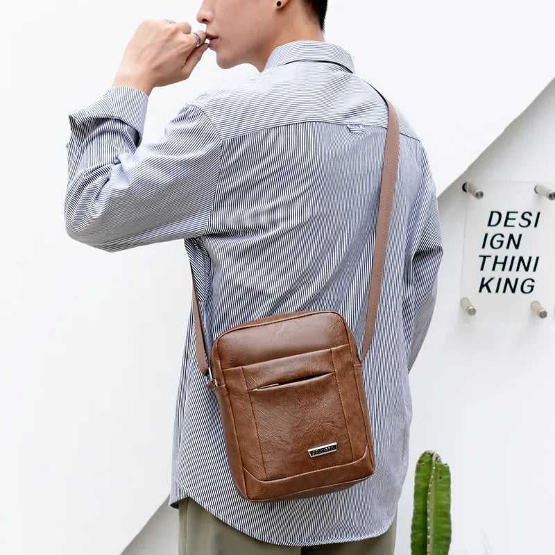This men's shoulder handbag is made of high-quality PU leather, featuring a large capacity for all your essentials. Perfect for business and casual use.