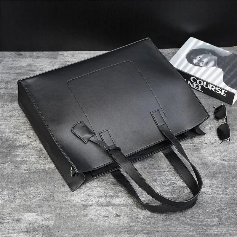 This men's tote bag is made of high-quality PU leather, designed for versatility and style. It features a spacious interior to accommodate all your essentials, making it ideal for everyday use or business meetings.