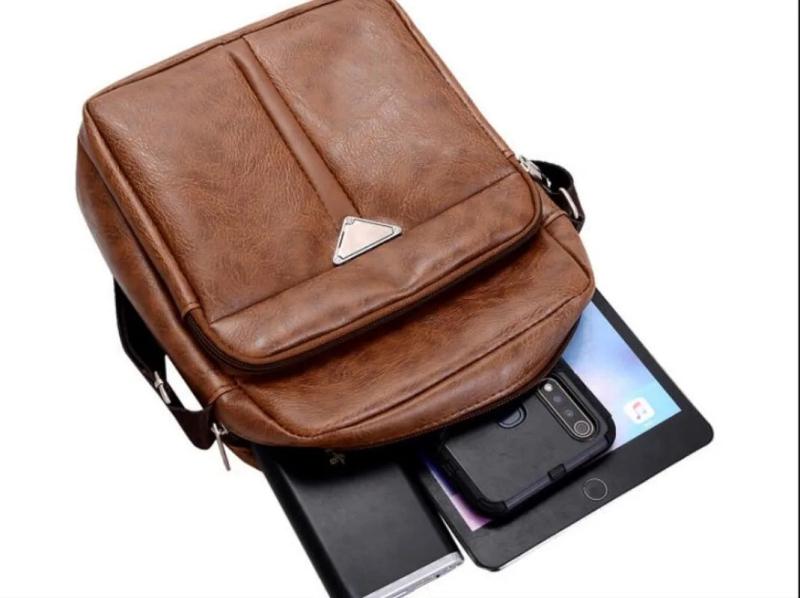 This men's shoulder bag is made of durable PU material with a multi-layer design for large capacity. It can be used as a chest bag, messenger bag, or backpack handbag.