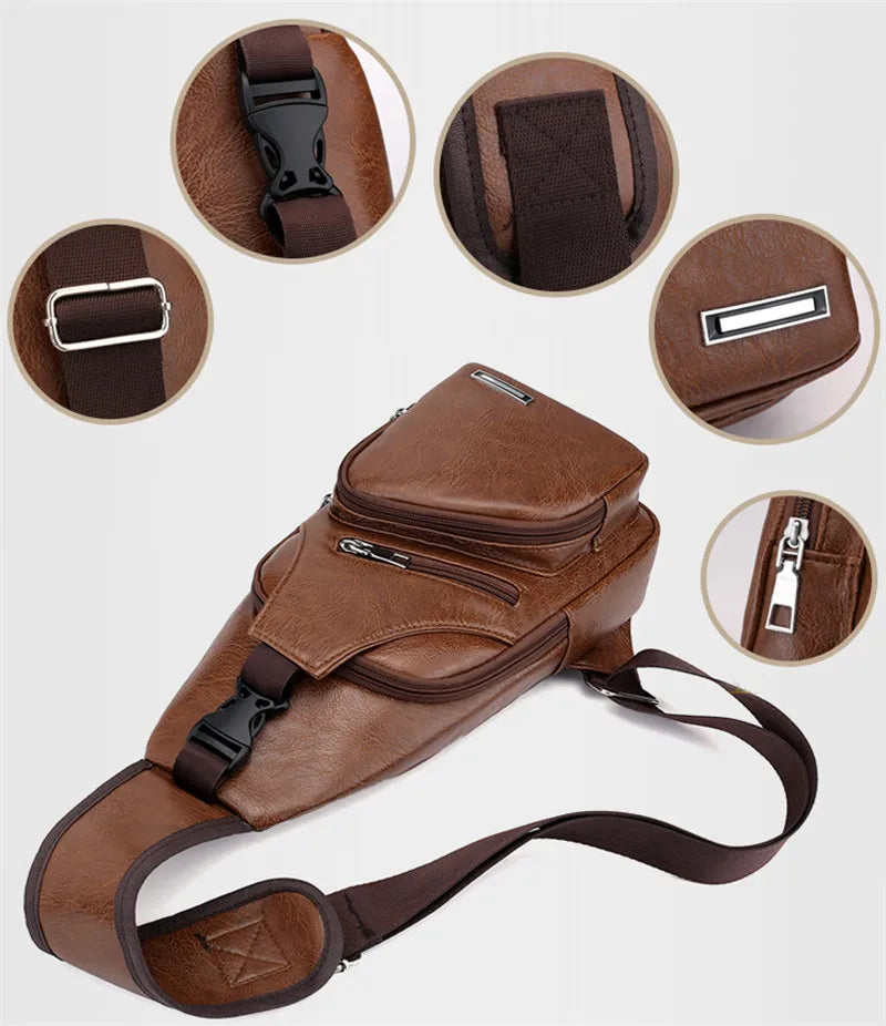 Men's Shoulder Bag Sling Chest Pack Canvas Charging Sports Crossbody Handbag
