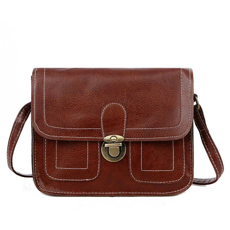 Metal Lock Shoulder Bag Solid Retro Small Square Bag Purses and Handbags