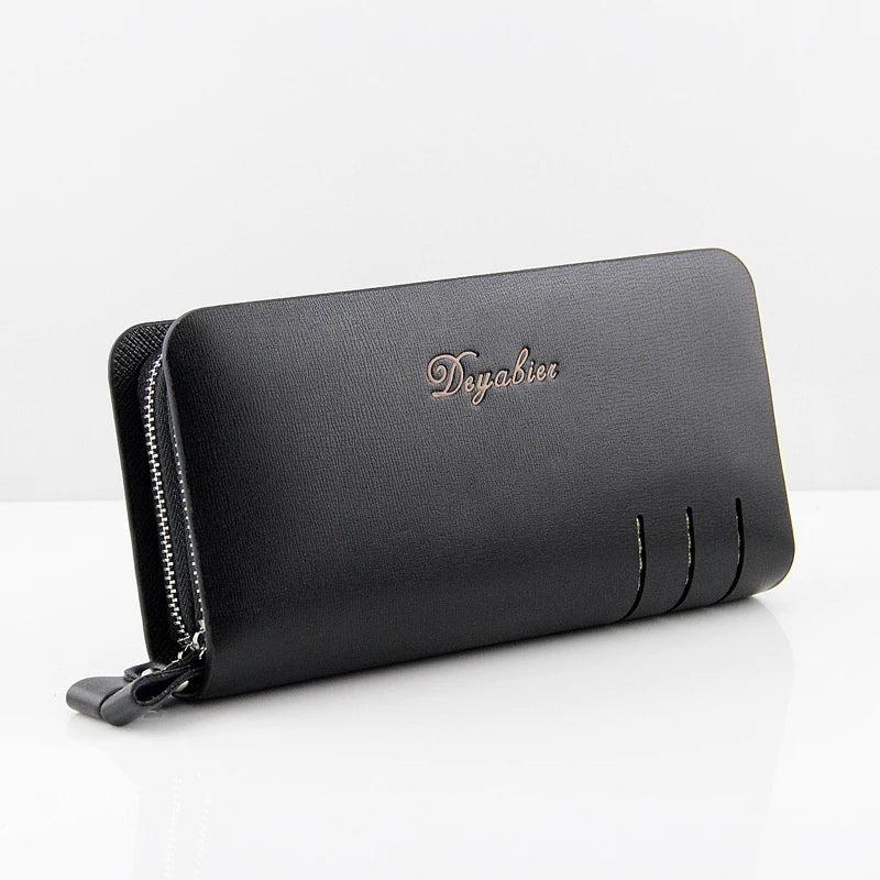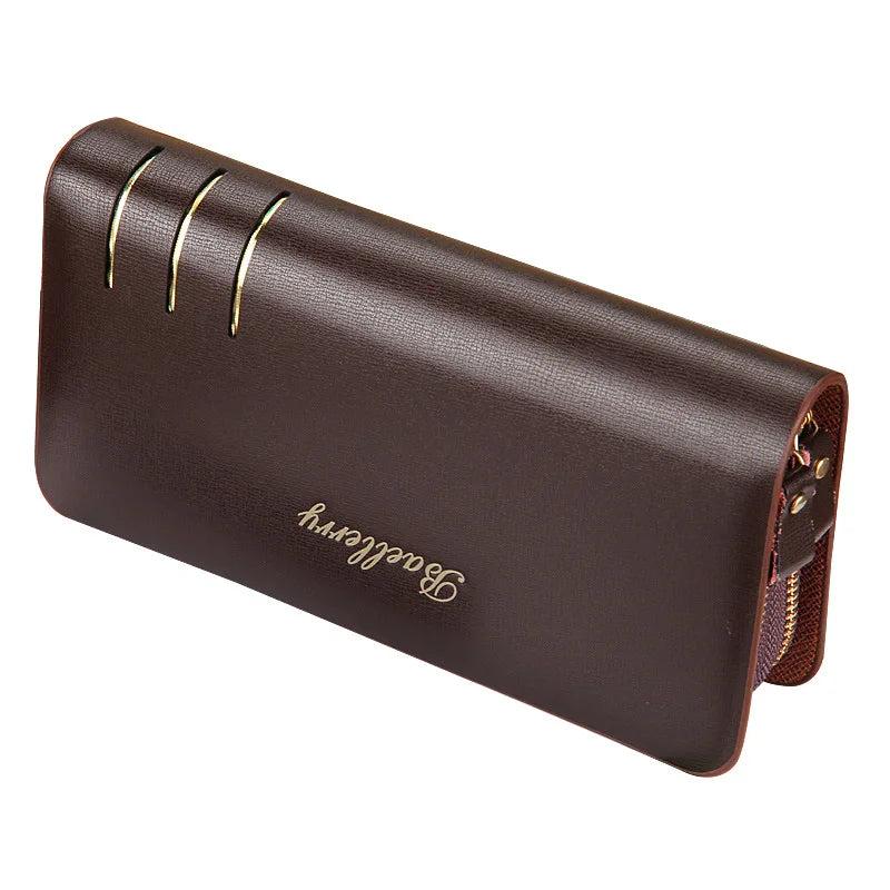 This vintage long clutch wallet for men features a stylish plaid pattern and zipper closure. It is perfect for storing cash, cards, and other essentials in style.