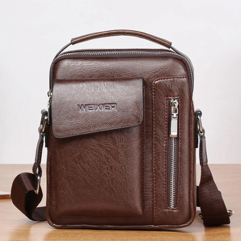 This casual men's shoulder bag is made of high-quality vintage leather. It is a versatile and stylish accessory for everyday use.