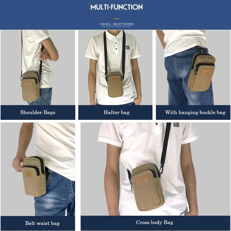 Waterproof Multifunctional Canvas Phone Bag Shoulder Bag Man Handbag