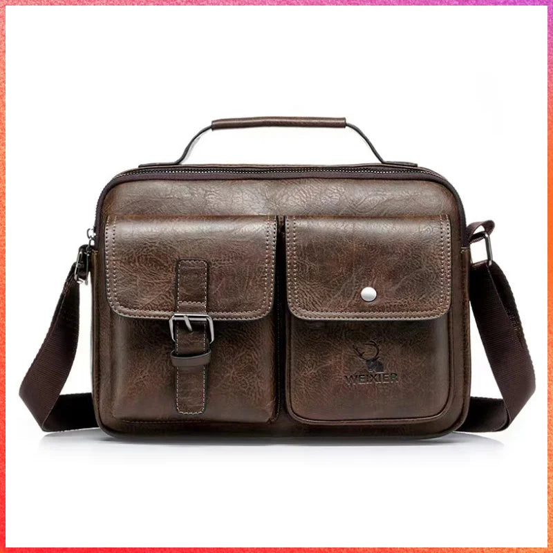WEIXIER Coffee PU Leather Men Crossbody Bag Shoulder Bags
