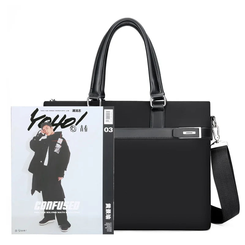 This men's briefcase is made of durable Oxford cloth, perfect for conferences and daily use. It features a retro design that offers a casual and professional look.