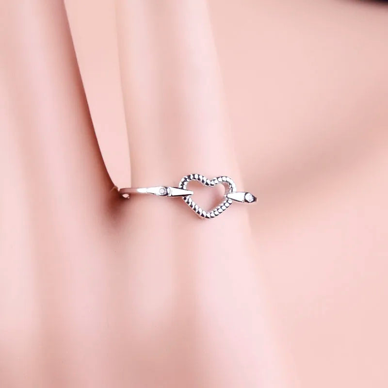 925 Silver Heart Frame Finger Chain Ring Engagement Wedding Valentine Bague