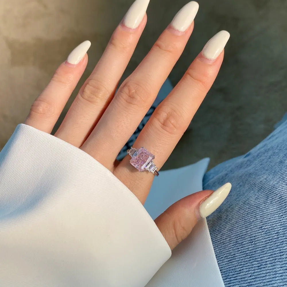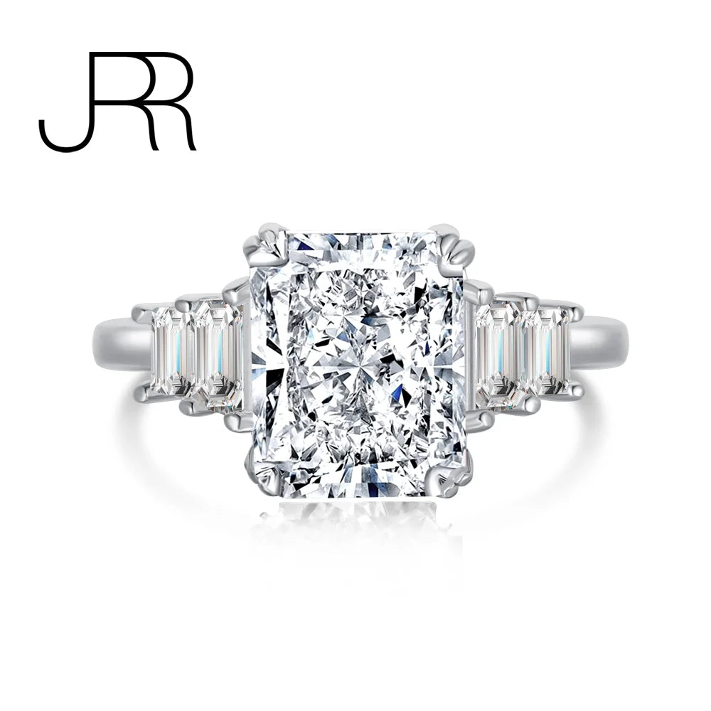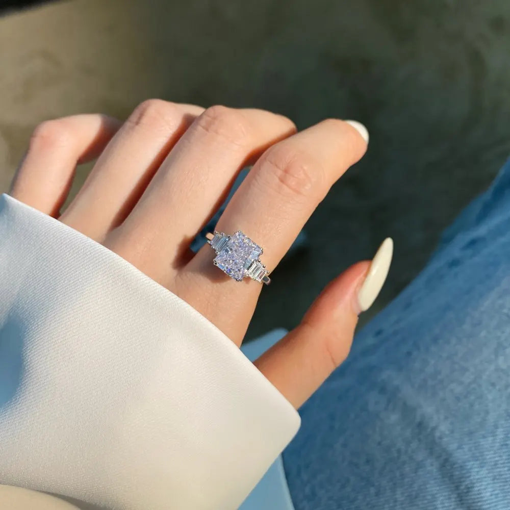 925 Silver Lab Sapphire Diamond Baguette Wedding Engagement Ring
