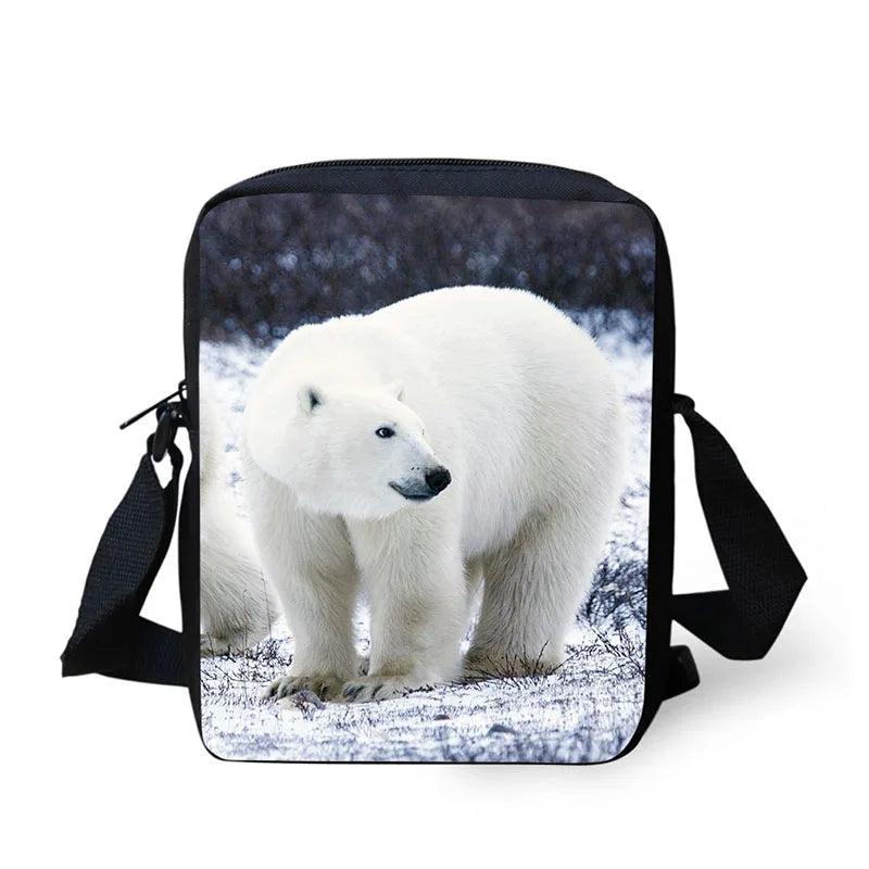 Stay stylish with this bear print messenger bag that features a crossbody design. Perfect for carrying your essentials on the go.