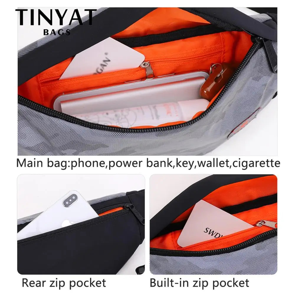 This men's waist bag is made of net polyester, perfect for carrying your essentials. The night glow feature adds visibility in low light conditions.