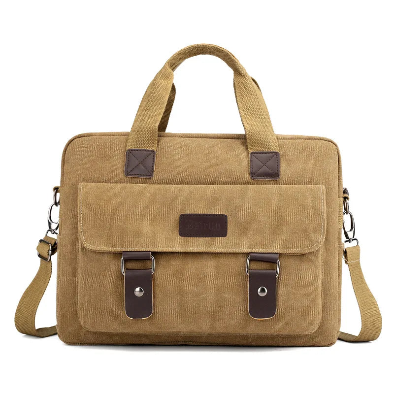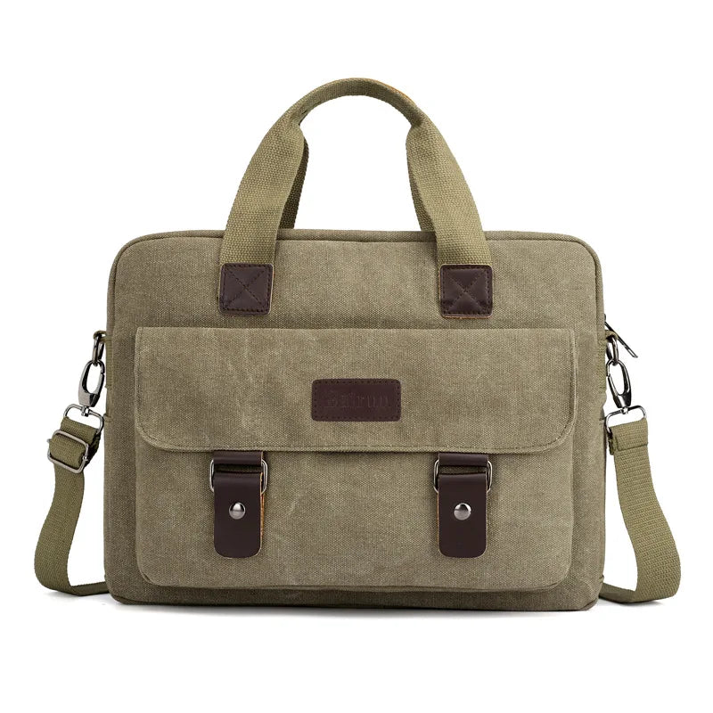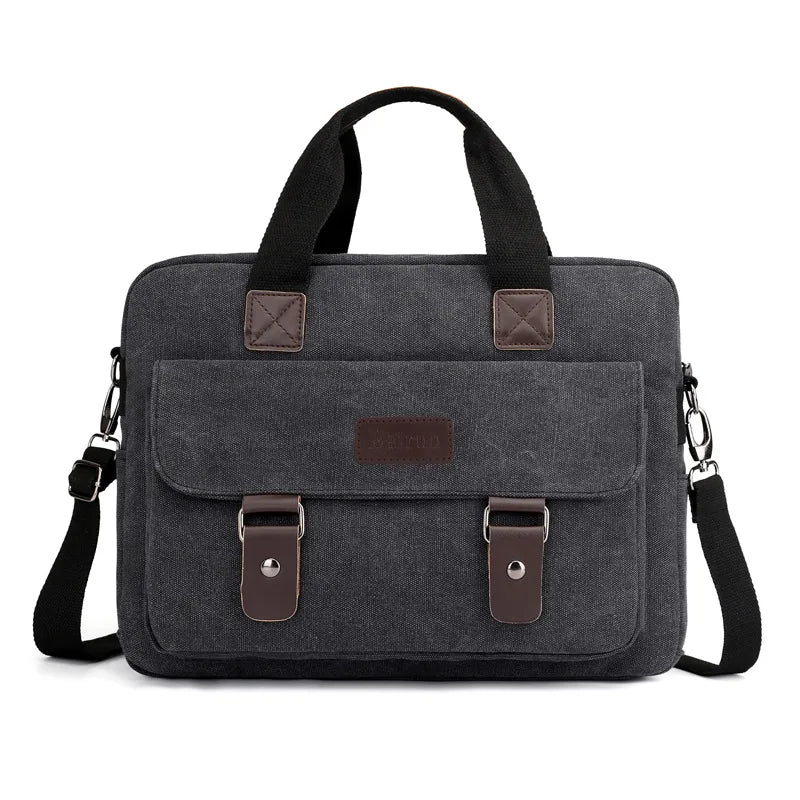 This canvas briefcase is perfect for business men and casual use. It can accommodate a 13-inch computer and has multiple compartments for organization.