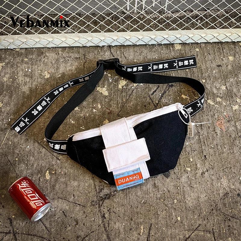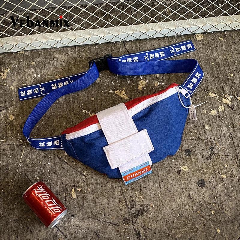 Canvas Waist Pack Bag Men Panelled Fanny Pack Girls Street Sport Crossbody Bags
