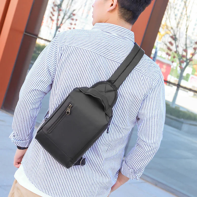 This chest pack is made of waterproof Oxford fabric, suitable for daily use or travel. It features a shoulder crossbody design for easy carrying.