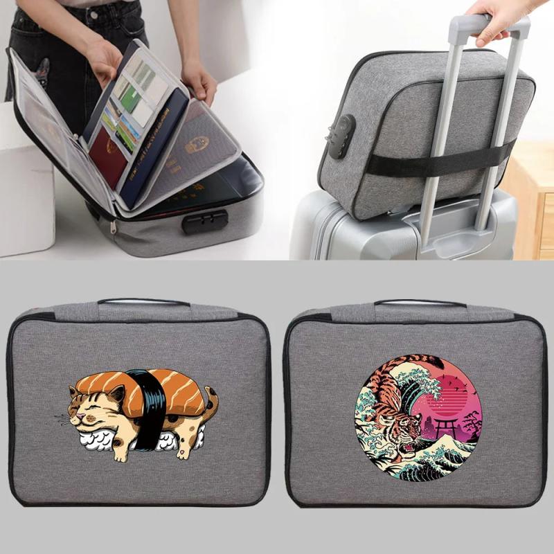 Keep your documents organized and secure with this adorable cat print storage bag organizer box. Features a password lock for added security.