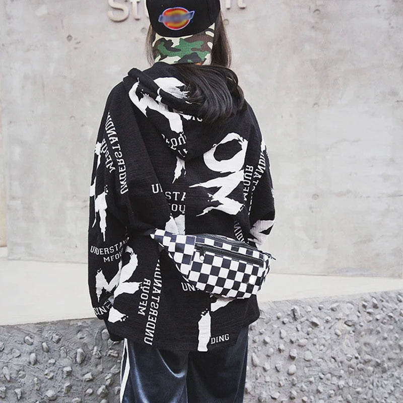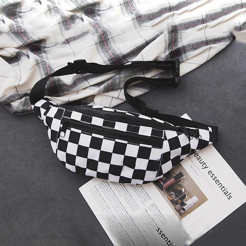 Checkered Waist Bag Zipper Phone Pocket Chest Bag Unisex Fanny Pack