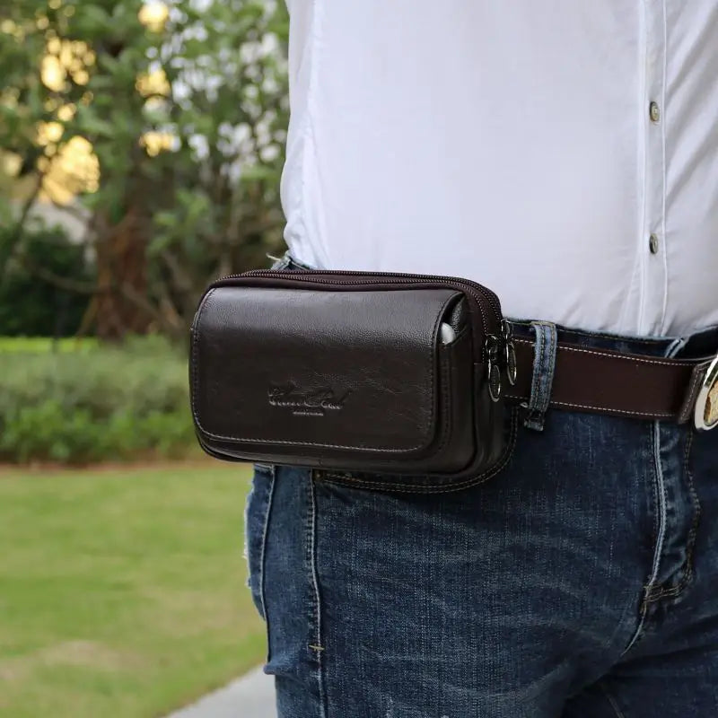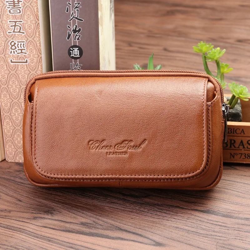 CHEER SOUL Leather Men Phone Bags Waist Belt Bag Fanny Pack Phone Pouch