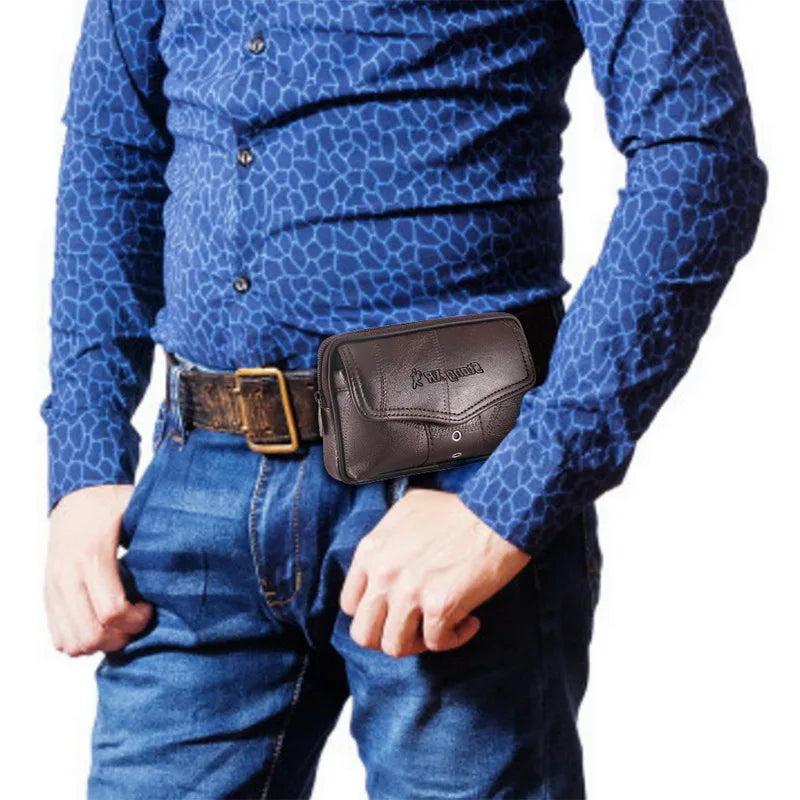 This fanny waist bag is made of high-quality PU leather with a classic texture, perfect for business use. It features a solid design and can hold mobile phones.