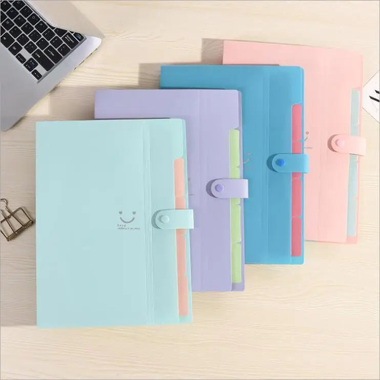 Expanding File Folder Organizer with 5 Pockets A4 Snap Closure Plastic Bags