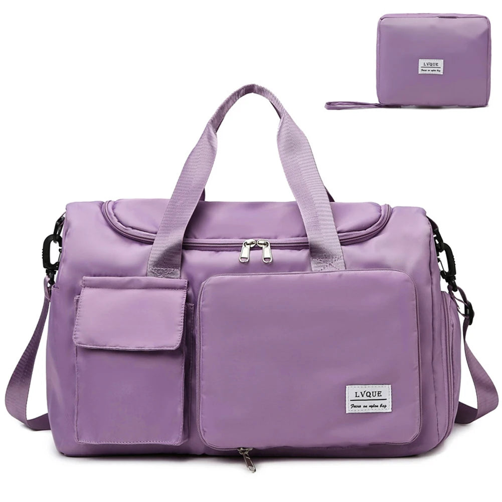 This multifunctional week travel duffel bag is designed for convenience and organization. It features a shoes compartment and can be easily folded when not in use.