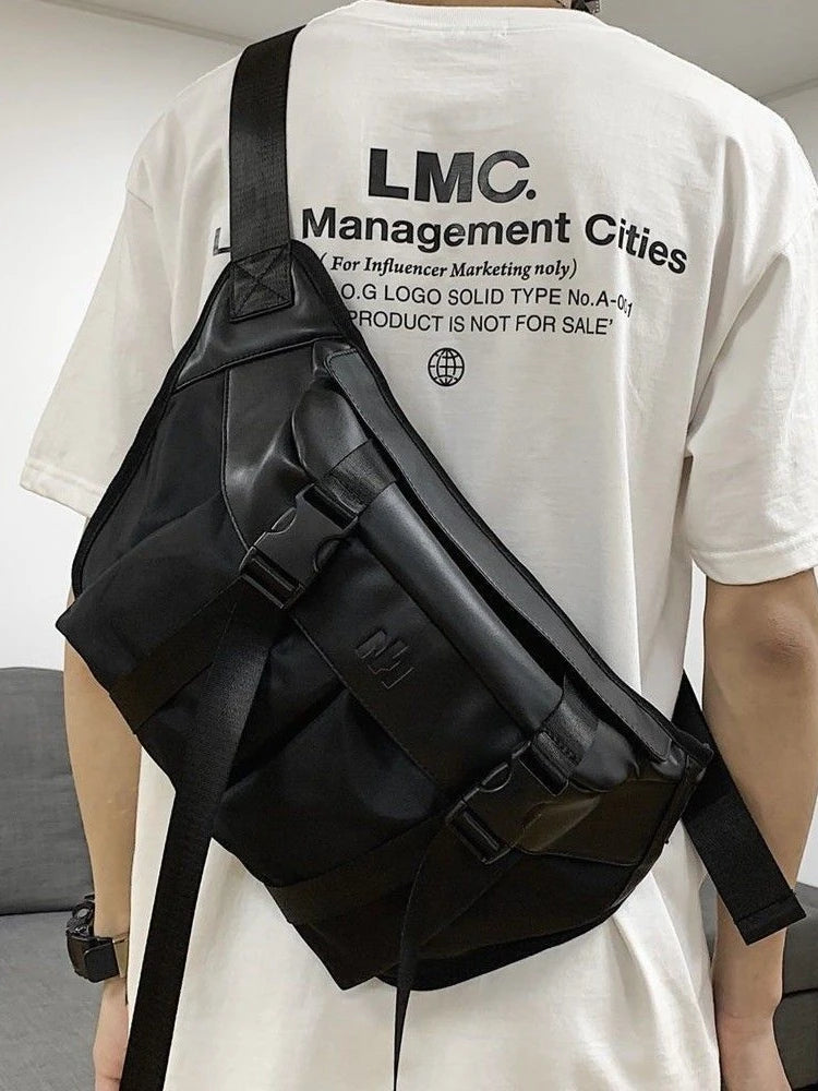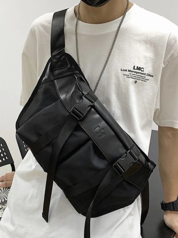 Foufurieux Messenger Bag Men Tide Chest Bag Pu Solid Large Capacity