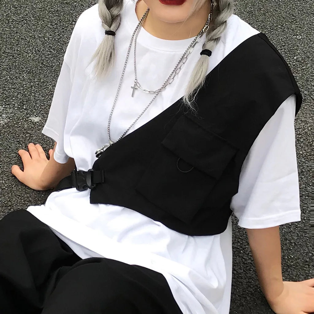 Functional Ribbons Chest Bags Hip Hop Streetwear Men Waist Bags