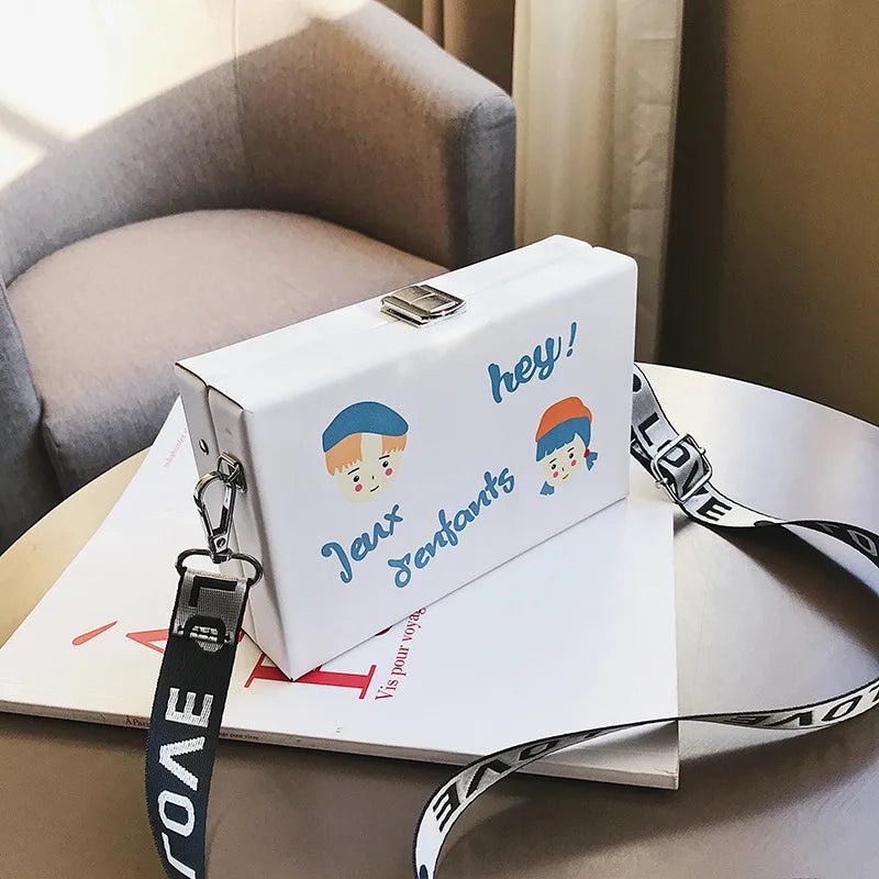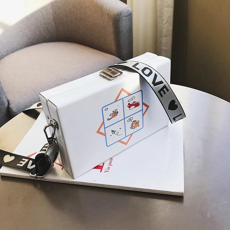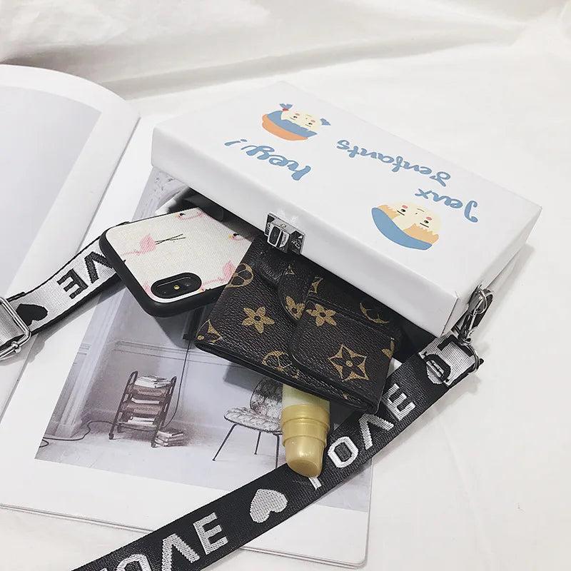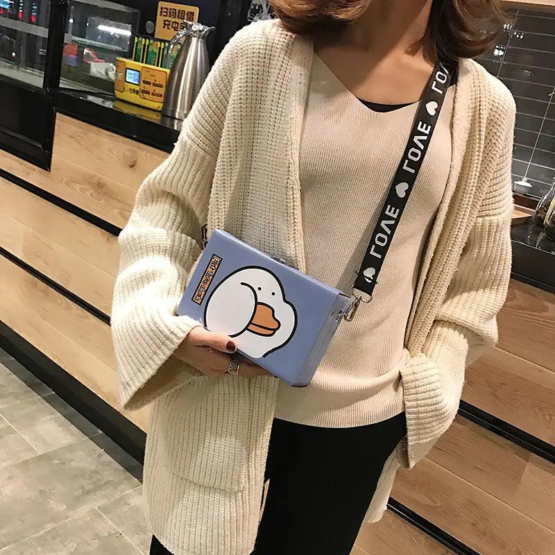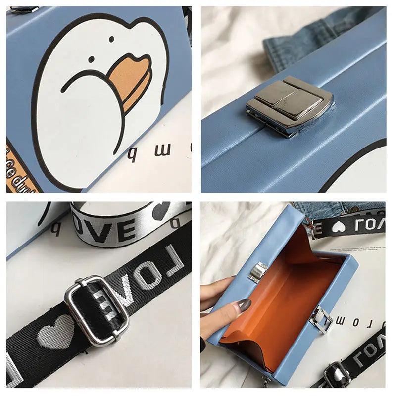 Harajuku Animal Print Box Bag Pig Bags Wide Shoulder Strap