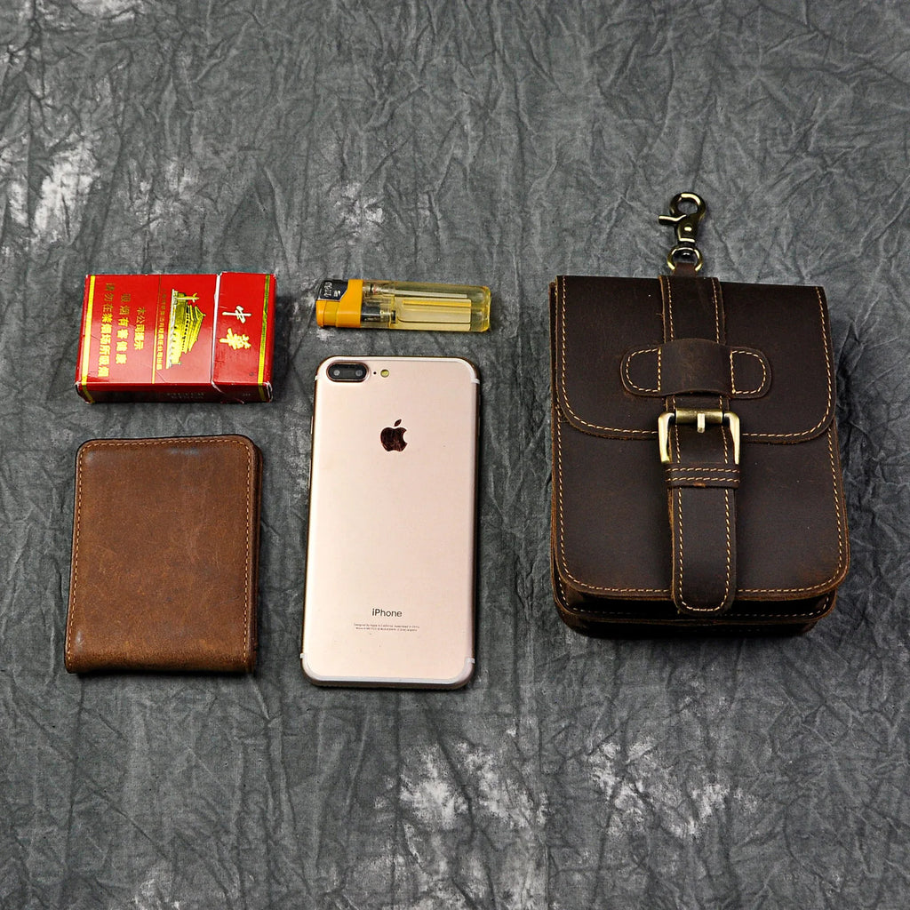 Hot Leather Travel Hook Fanny Waist Belt Pack Phone Cigarette Pouch Case for Men