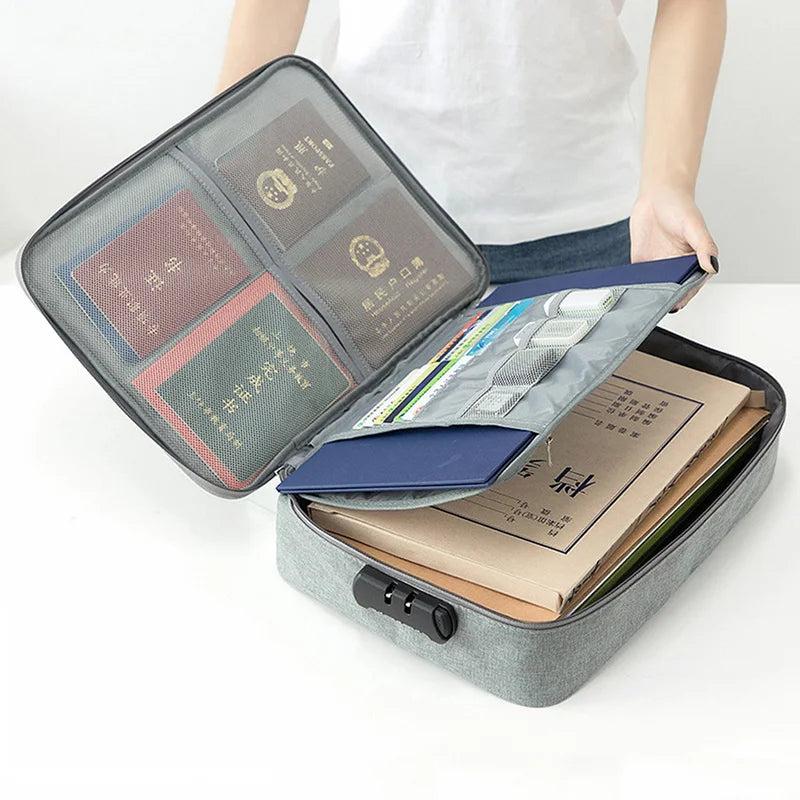 Description:Keep your files, bills, passports, and documents safe and organized with this extra-large waterproof bag.Features: Coded lock for enhanced security Waterproof material to protect your documents Spacious enough to hold various items Ideal for organizing registration papers Premium finishing for a professional look This product may be available in additional...