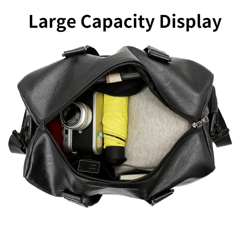 Stay organized and stylish with this leather gym bag. Perfect for fitness, yoga, travel, and more. Features a wet compartment for shoes and a spacious design for all your gear.