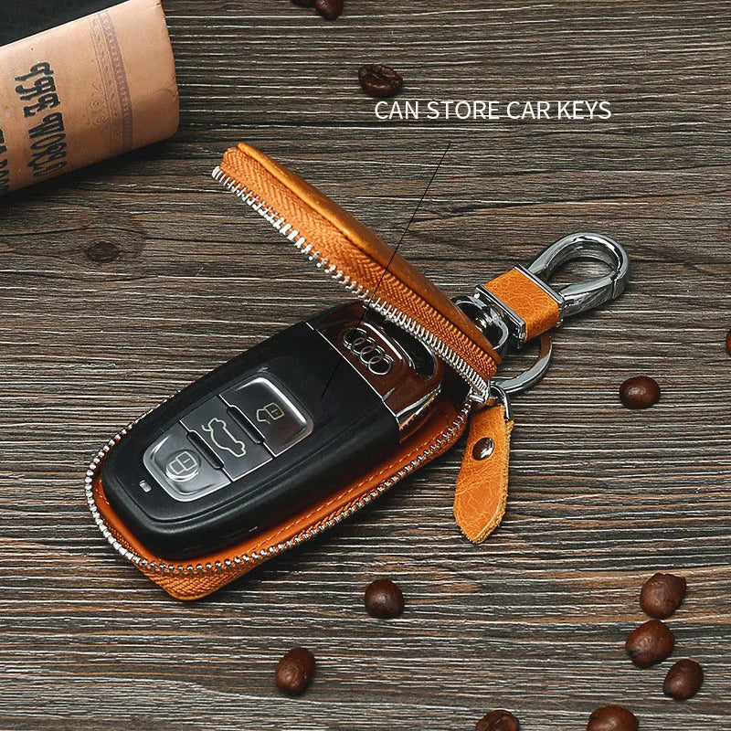 Keep your car or motorcycle keys secure and stylish with this retro waist hanging key bag made of first layer cowhide leather.