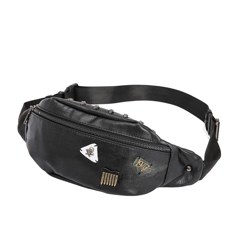 Leather Skull Chest Bag for Men Travel Crossbody Messenger Bag