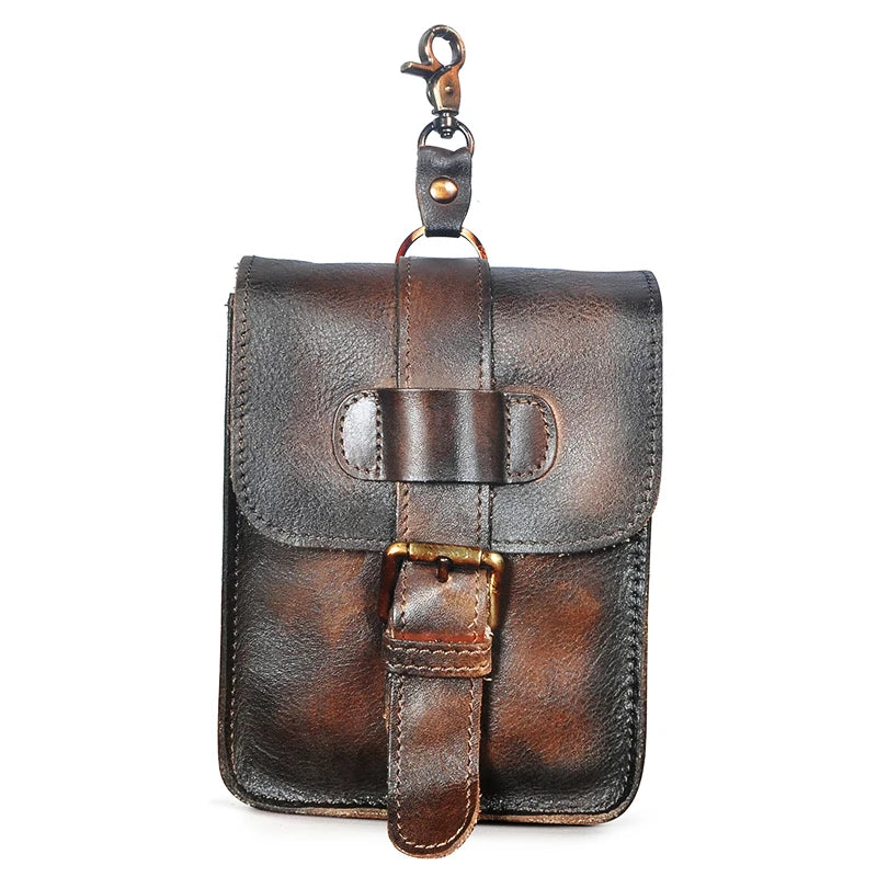 This small hook fanny pack is made of high-quality natural leather and is ideal for carrying your phone, cigarettes, and other small items while on the go.