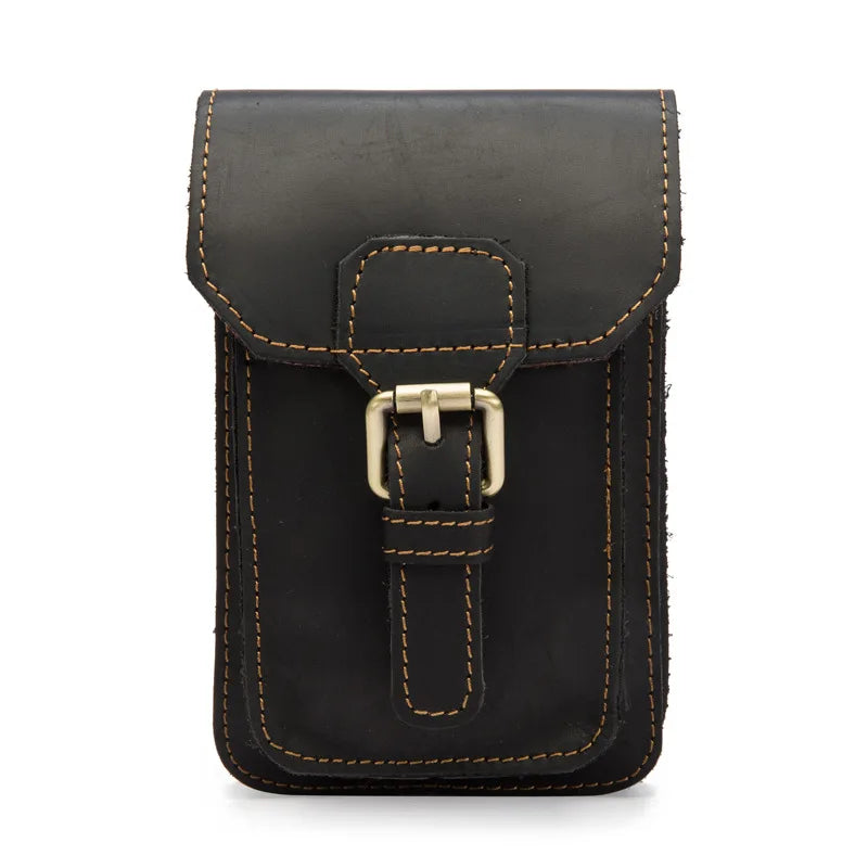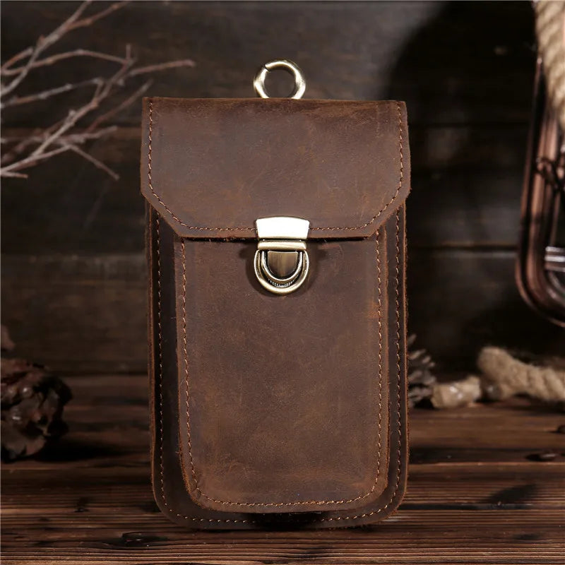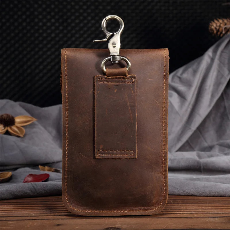 This waist pack is made of high-quality leather, designed for carrying your phone, money, and other essentials. It features a hook for easy attachment.