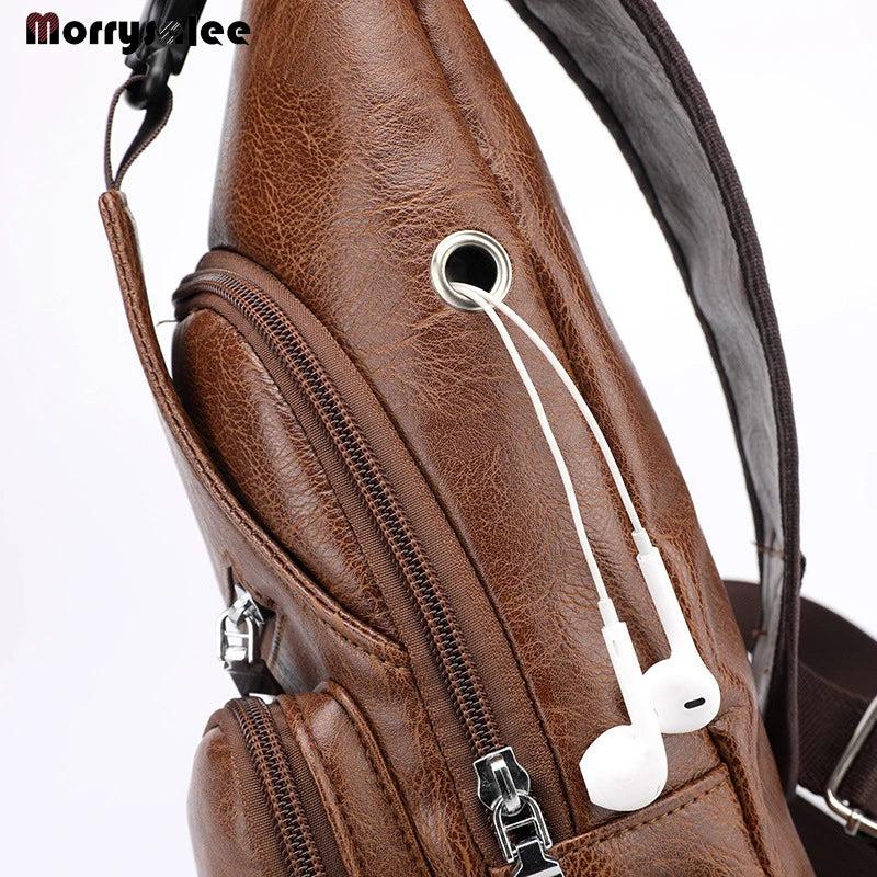 Male Shoulder Bags USB Charging Crossbody Bags Men Leather Chest Bag School