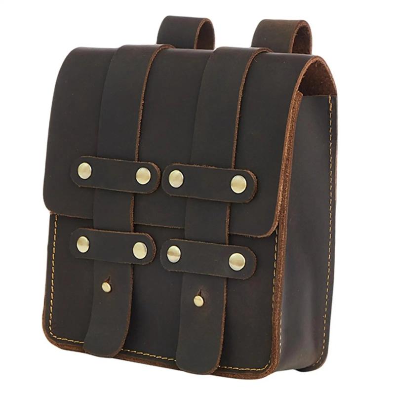 Vintage-inspired phone case fanny pack made of dark brown PU leather with a medieval aesthetic.