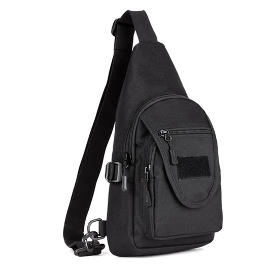 This men's chest pack is made of durable nylon material with a stylish camouflage design. It's versatile and perfect for travel, hiking, or everyday use.