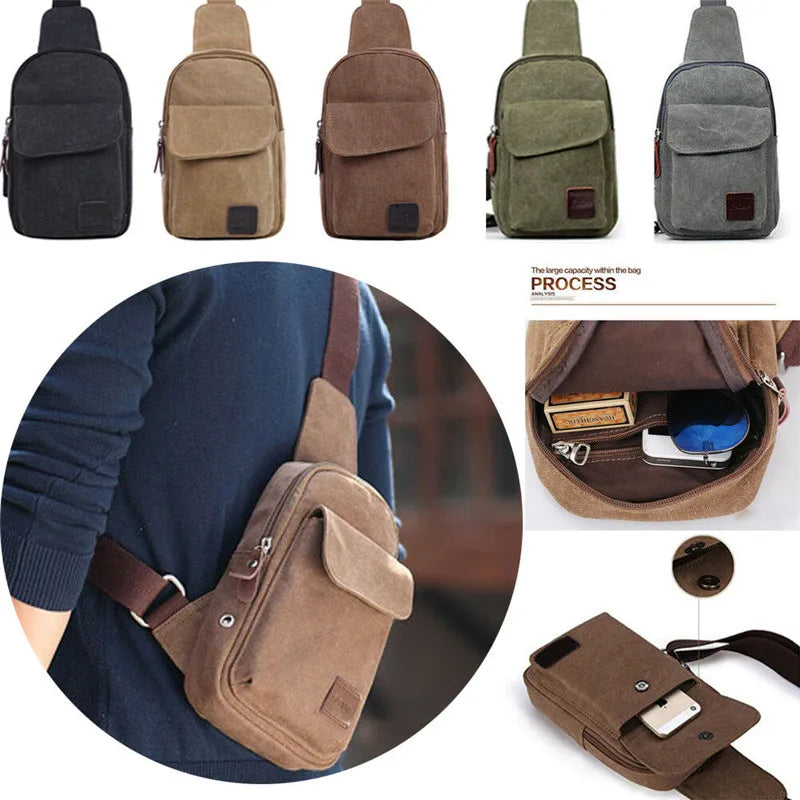 Men Canvas Bag Pack Travel Hiking Cross Body Messenger Shoulder Sling Chest Bags