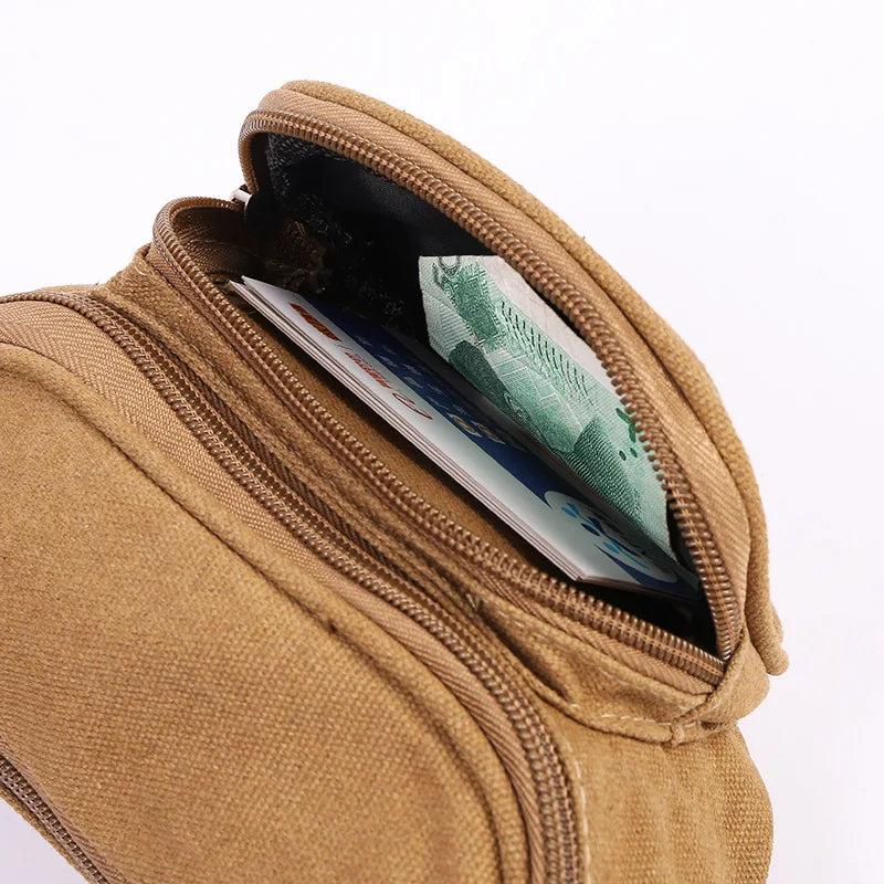 Men Canvas Waist Bag for Sport Casual Two Layer Waist Pack Climbing Riding