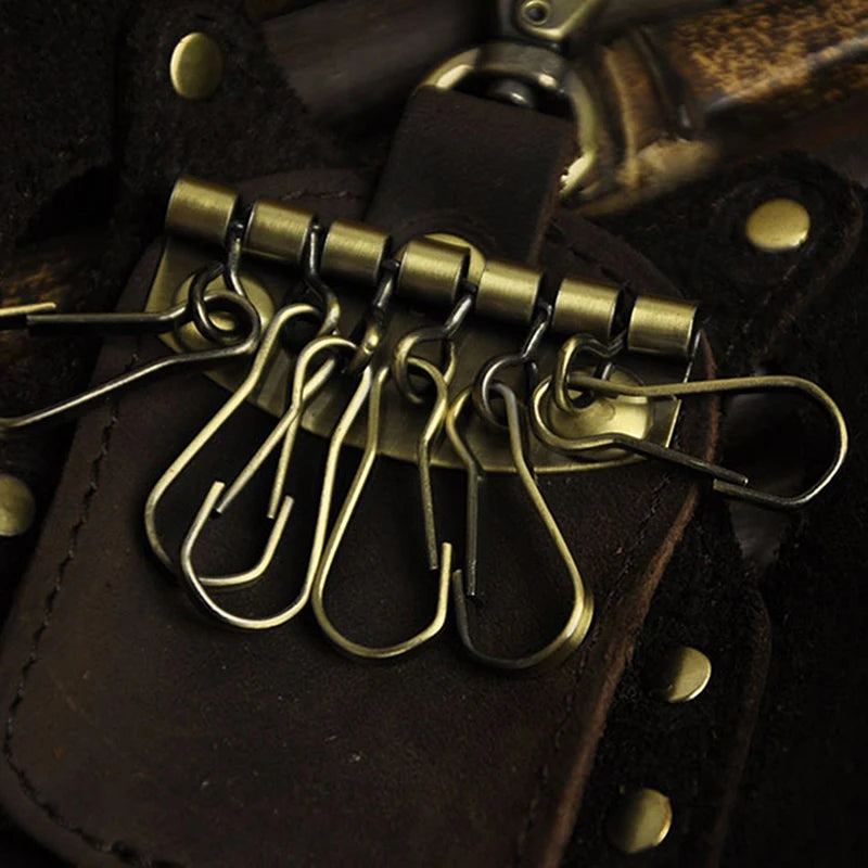 Keep your car keys safe and stylish with this classic first layer cowhide key package bag. It features a key ring case with a chain for easy access.