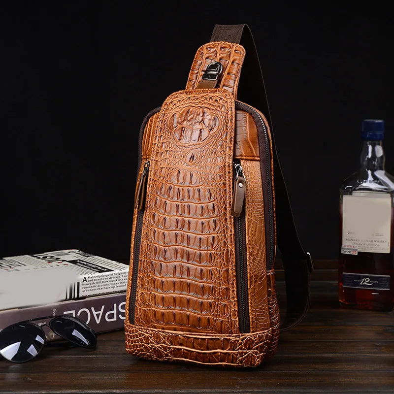 Men Crocodile Pattern Leather Chest Bag Crossbody Bags