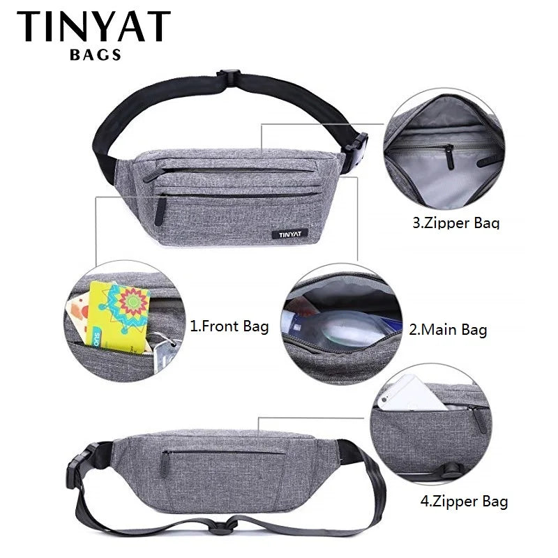 Men Grey Waist Bag Pack Casual Functional Phone Money Belt Fanny Travel Hip